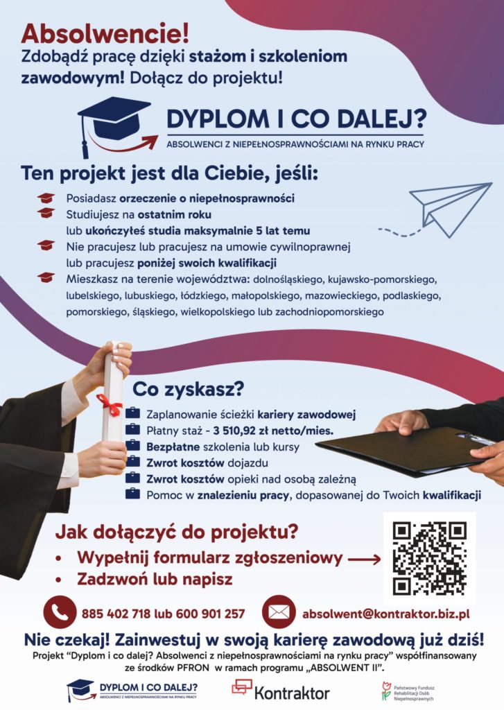 Kontraktor Sp. z o.o. ogłasza kolejną turę naboru do projektu ,,Dyplom i co dalej? Absolwenci z niepełnosprawnościami na rynku pracy” współfinansowanego ze środków PFRON.